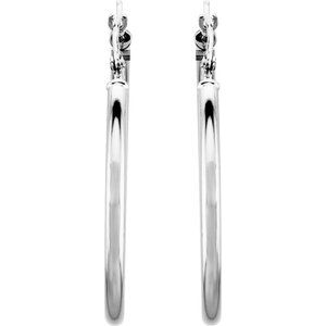 14K White Tube 30 mm Hoop E...