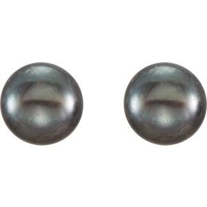 14K Yellow 6-7 mm Cultured Black Freshwater Button Pearl Earrings