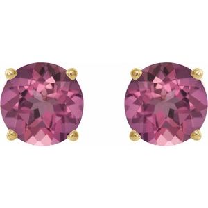 14K Yellow 6 mm Natural Pink Tourmaline Stud Earrings