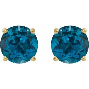 14K Yellow 8 mm Natural London Blue Topaz Stud Earrings