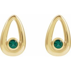 14K Yellow Lab-Grown Emerald Geometric Earrings