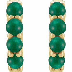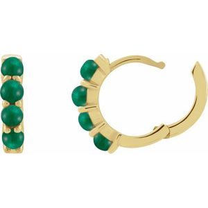 14K Yellow Natural Emerald Cabochon Hinged 14.7 mm Hoop Earrings