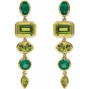 14K Yellow Natural Peridot & Lab-Grown Emerald Dangle Earrings