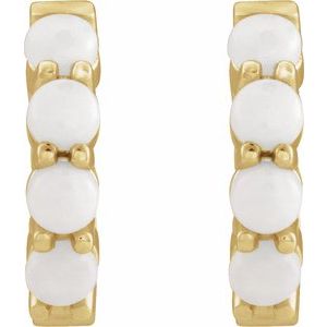 14K Yellow Natural White Opal Cabochon Hinged 14.7 mm Hoop Earrings