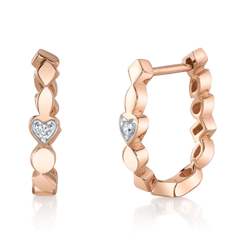 0.03CT 14K R/G DIAMOND HEART HUGGIE EARRING