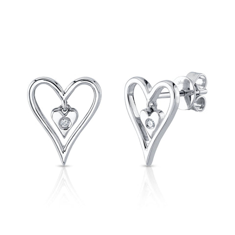 0.03CT 14K W/G DIAMOND OPEN HEART STUD EARRING