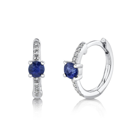 0.06CT DIAMOND & 0.33CT BLUE SAPPHIRE 14K W/G HUGGIE EARRING