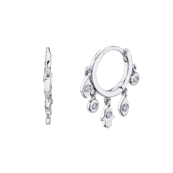 0.12CT 14K W/G DIAMOND EYE HAMSA SHAKER HUGGIE EARRING