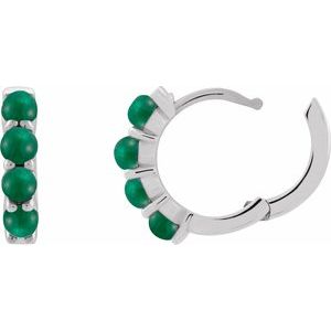 Sterling Silver Natural Emerald Cabochon Hinged 14.7 mm Hoop Earrings