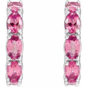 Sterling Silver Natural Pink Tourmaline 18.2 mm Hoop Earrings