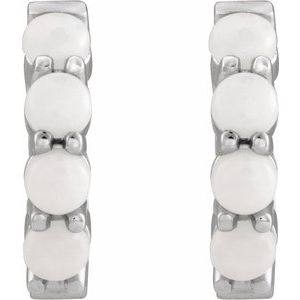 Sterling Silver Natural White Opal Cabochon Hinged 14.7 mm Hoop Earrings