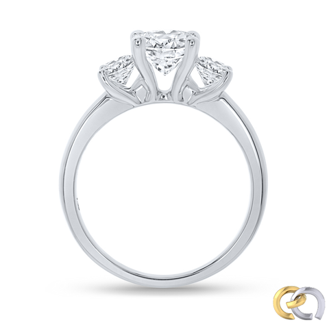 Round center with 1 round diamond on either side of center .50cts total side diamond weight $3775 (center diamond not included)