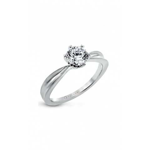 Make your proposal one for the ages with this glamorous solitaire engagement ring from Zeghani. This versatile engagement ring contains heirloom characteristics with a trendy design. Made from high-quality 14k white gold, this keepsake can withstand normal wear and tear for decades. With detailed metalwork in this ring's design, this band is a beautiful representation of your continued commitment. A protective setting guards your center stone from blemishes, helping to give any stone a distinct shimmer and shine. AZZI Jewelers in Ingham County are committed to supplying customers with a variety of engagement jewelry from today’s leading brands. Reach out to us above online or over the phone, or stop by to see this piece in person.