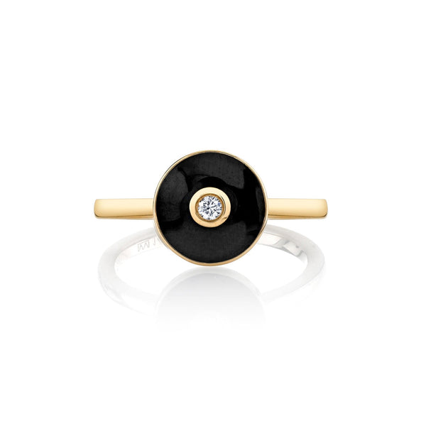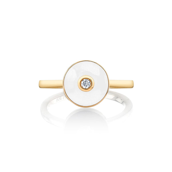 Clean lines and colorful options - the CHROMA Bullseye Ring comes in black, white, magenta, blue and green and features a single, perfect, bezel set diamond. Details are everything, and this ring shares the signature MM open shank design with our best sellers from the Crown Collection of engagement rings. Make a statement everyday with this one!