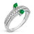 This striking ring features two vivid pear-shaped emeralds set opposite each other on an open band, accented by rows of sparkling pavé diamonds. The asymmetrical yet balanced design creates a bold and contemporary elegance.
