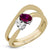 This 14k gold ZR2608 Color Ring features a stunning 0.23 carat pear diamond and 0.43 carat oval ruby, delicately set on a split shank band with a subtle curve.