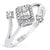 A contemporary bypass ring in white gold featuring a square-shaped diamond cluster centerpiece with baguette and round diamonds, flanked by two round brilliant diamonds on each end. Its unique, open-ended design offers modern elegance with a playful twist on classic sparkle.
