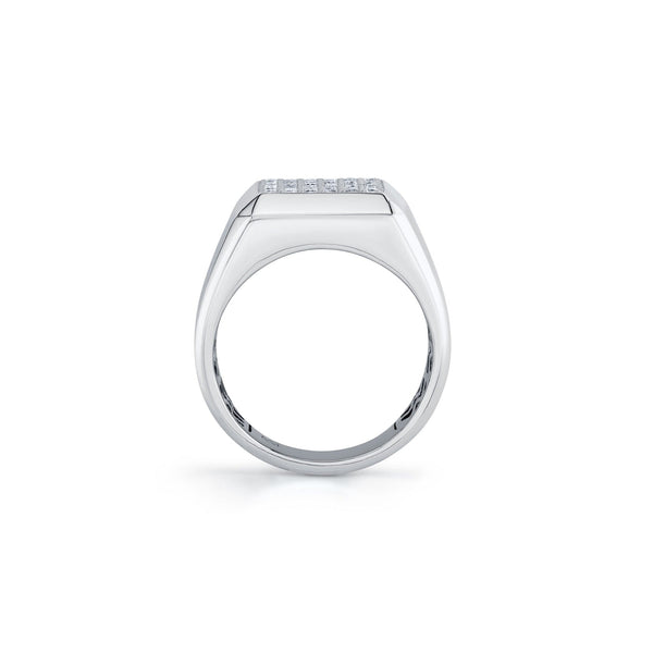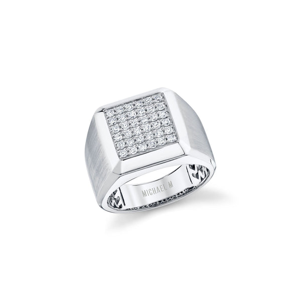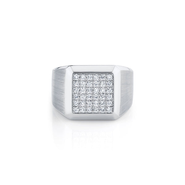 This Mens Pinky Block Signet Ring with Pave presents a striking masculine design paired with meticulous craftsmanship. Its diamond pave black flat top creates a refined contrast between brushed and high polish surfaces, elevating its visual impact. Built for lasting wear and style, this ring serves as a timeless accessory suitable for both casual and formal looks. Perfect for individuals desiring a statement piece that merges contemporary style with classic sophistication.