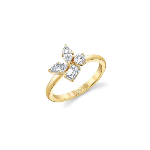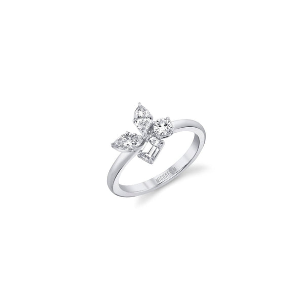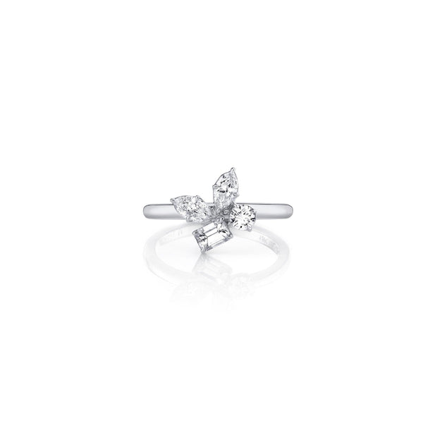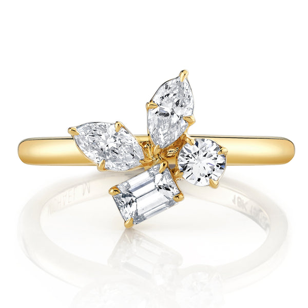 Crafted with carefully arranged marquise, pear and emerald cut stones, the Montage Cluster Ring exudes unmatched elegance. Ideal for a wedding day or cocktail party, this ring is sure to uplift any mood. For a complete look, pair it with the matching Montage Cluster Earrings.