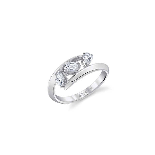 The Montage Knife Edge Bypass Ring features 3 mixed cut diamonds, offering a stunning and unique display of sparkle and brilliance. With precision craftsmanship and attention to detail, this ring is perfect for the modern woman looking for a timeless and elegant piece of jewelry. You'll love the way it catches the light and adds a touch of glamour to any outfit.