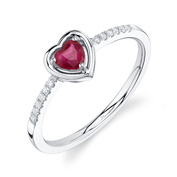 0.06CT DIAMOND & 0.28CT RUBY 14K W/G HEART RING