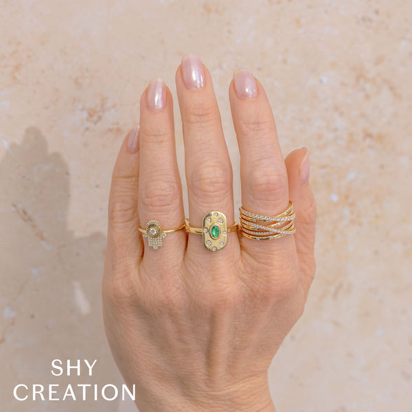 0.07CT DIAMOND & 0.21CT EMERALD 14K Y/G OVAL RING