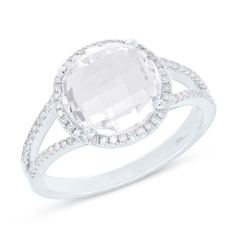 0.20CT DIAMOND & 4.49CT WHITE TOPAZ 14K W/G RING