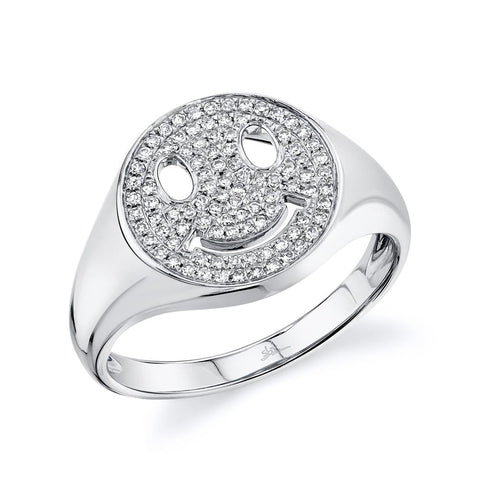 0.20CT 14K W/G DIAMOND PAVE SMILEY SIGNET RING