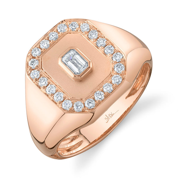 0.46CT 14K R/G DIAMOND EMERALD BEZEL SIGNET RING