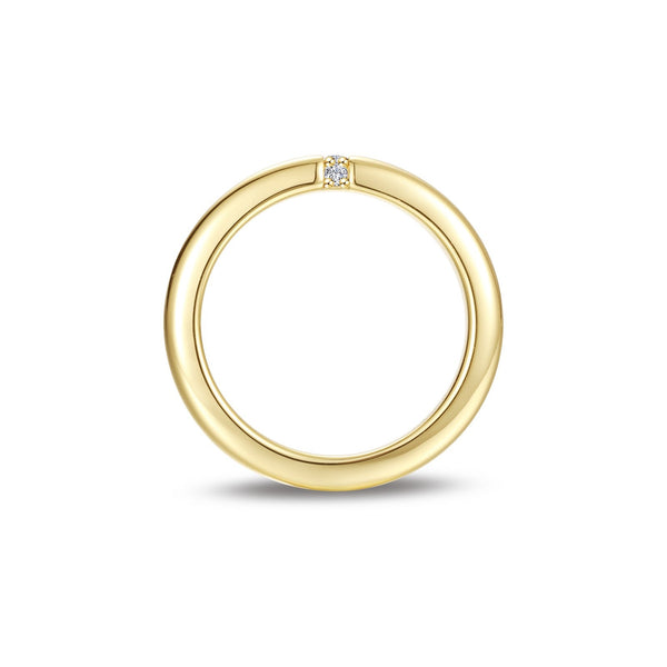 A refined and timeless band that balances minimalist design with subtle elegance. Three shimmering Lassaire simulated diamonds are delicately set within the smooth sterling silver band plated with gold. A symbol of promise and everlasting love.