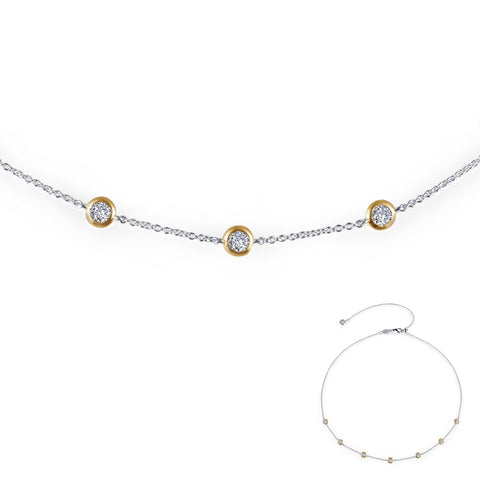 Simple elegance. This adjustable 7 Symbols of Joy choker necklace features seven Lafonn's signature Lassaire simulated diamonds set in sterling silver using Lafonn's exclusive TR Gold, a new and improved plating process that preserves the rich color of gold and enhances the wearability of our gold-plated styles. The chain is in sterling silver bonded with platinum. May the 7 Symbols of Joy bring you Longevity, Health, Love, Happiness, Peace, Prosperity, & Friendship.