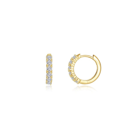 Featuring a sophisticated scalloped edge, these hoops offer a delicate yet bold design that complements any outfit. The unique design creates a dynamic play of light, giving them a modern and refined appeal. Set with Lafonn's signature Lassaire simulated diamonds in sterling silver plated with gold.