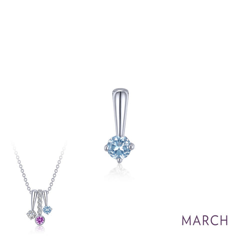 March - Aquamarine. Lafonn's Birthstone Love Charm, featuring a simulated aquamarine in sterling silver bonded with platinum. Wear on a Lafonn CH00028P20 silver chain.
