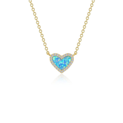 Timeless elegance. This adjustable halo heart necklace features a simulated blue opal surrounded by Lafonn's signature Lassaire simulated diamonds in sterling silver using Lafonn's exclusive TR Gold, a new and improved plating process that preserves the rich color of gold and enhances the wearability of our gold-plated styles.