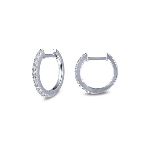 Cute and dainty. These Lafonn round huggie hoops are set with Lafonn's signature Lassaire simulated diamonds in sterling silver bonded with platinum.