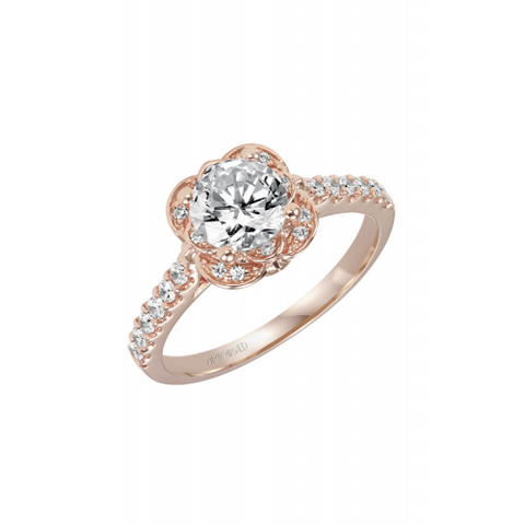 Diamond engagement ring featuring an exclusive ArtCarved setting with prong set side diamonds and pave band