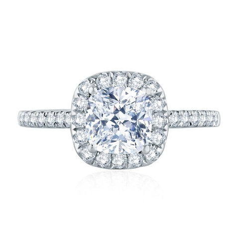 From the Metropolitain Collection, this open bridge cushion halo engagement ring is a beautifuly simple testimate to your love and commitment.
