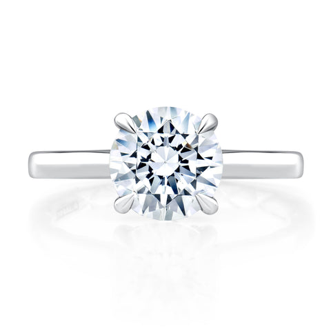 Coming from our Classics Collection. this timeless four prong engagment ring features a solitaire setting for a gorgeus round center stone. The ring features a Peek-a-boo diamond for a suprise sparkle. The band features our quilted interior to provide the most luxurious fit.