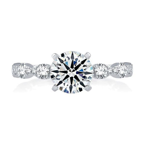 Four Prong Diamond Engagement Ring with Scalloped Band