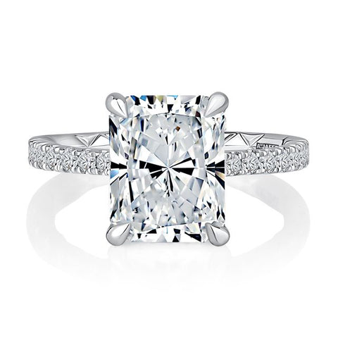 Radiant Shaped Diamond Engagement Ring with Hidden Halo and Quilts Interior Diamond Band