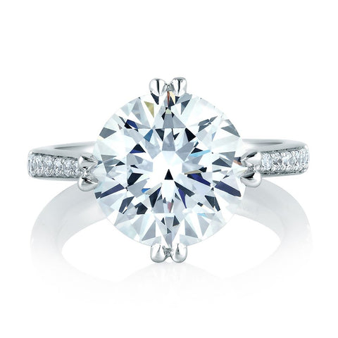 Starstruck by A.JAFFE is perfect for the woman who has star quality. This exclusive round diamond engagement ring includes a prong setting postioned in a new direction N*S*E*W.