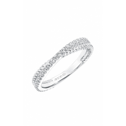 This stackable diamond band is the latest trend. The half diamond, half polished rope "X" design is chic and modern.  Pair it with one or more of our stylish bands from a wide variety of stackable designs, or wear it alone for an alternate look.  ArtCarved stackables - for everyday and for your most special occasions.