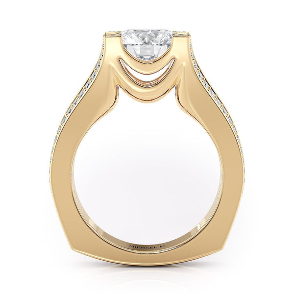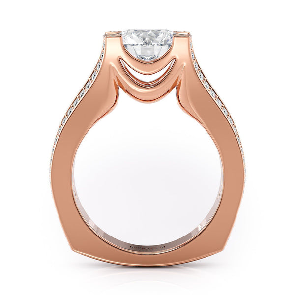 This MICHAEL M engagement ring is adorned with side diamonds handpicked by a certified MICHAEL M gemologist, each side stone has a minimum average color of G, a minimum average clarity of VS, and are hand-placed in an elegant prong setting by one of MICHAEL M’s master artisans.
