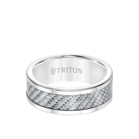 8MM Comfort Fit White Tungsten Carbide with White 1K Carbon Fiber Insert Center & Bright Rims