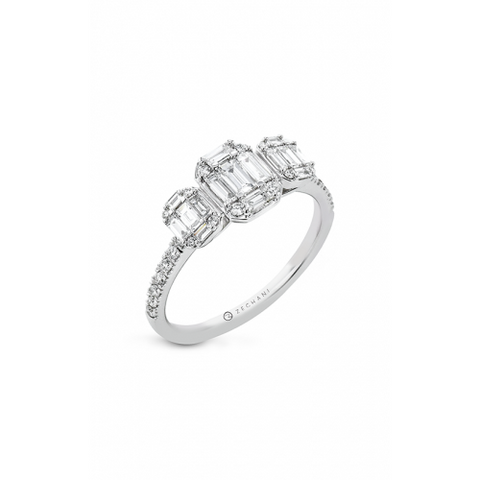 This sensational fashion ring from Zeghani can instantly instill confidence in the wearer. This diamond and three stone fashion ring complements almost any pattern. High-quality 14k white gold ensures your jewelry can withstand normal wear and tear. A stunning diamond center stone draws in the light from every angle. A graceful setting shields the mosaic center stone. AZZI Jewelers stocks luxury fashion rings from from today's best designers. Contact us online or over the phone for more information, or visit our showroom and see this piece for yourself!