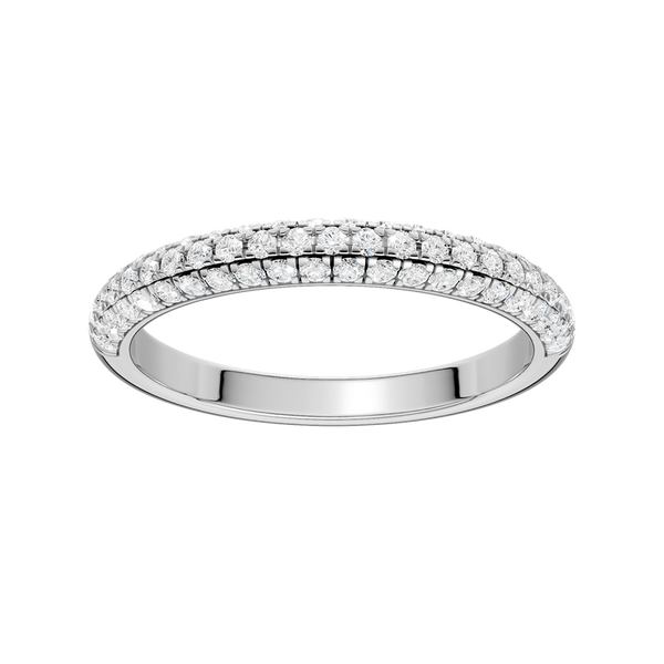 Complete your bridal set with this elegant dome shank wedding band, featuring 3/8 ctw of round lab grown diamonds. Designed to complement your engagement ring seamlessly, this band showcases a row of brilliant lab grown diamonds, adding sparkle and sophistication to your look. Crafted in 14KT White Gold, the gently curved dome shaped shank offers a comfortable fit while enhancing the beauty of the diamonds.