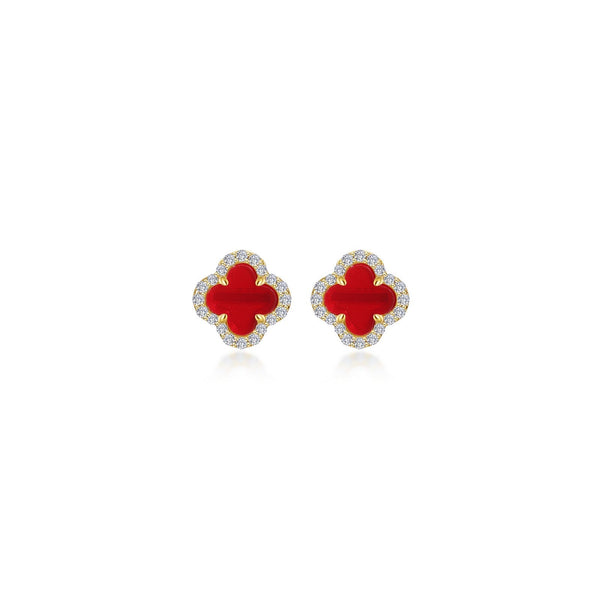 Timeless elegance. Each of these charming halo stud earrings features a black onyx good-luck symbol surrounded by Lafonn Lassaire simulated diamonds in sterling silver using Lafonn's exclusive TR Gold, a new and improved plating process that preserves the rich color of gold and enhances the wearability of our gold-plated styles.