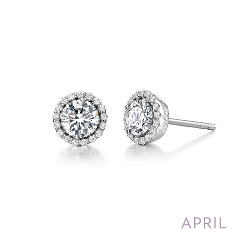 April - Diamond. Adorn yourself with Lafonn's birthstone jewelry. These halo stud earrings are set with Lafonn's signature Lassaire SIMULATED diamonds in sterling silver bonded with platinum.