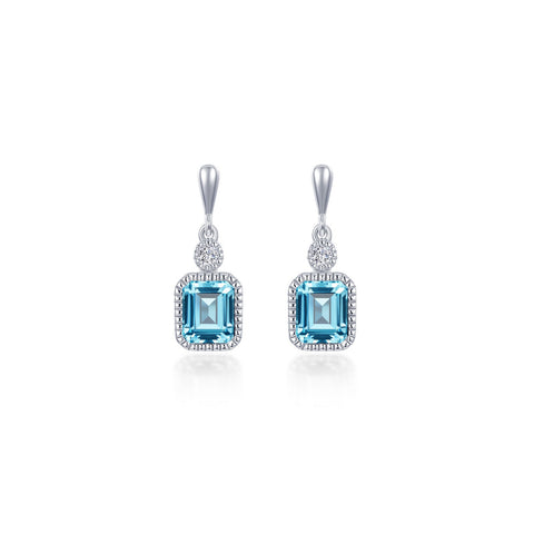 March - Aquamarine. Adorn yourself with Lafonn's birthstone jewelry. Each of these gorgeous earrings features an emerald-cut simulated aquamarine and a Lafonn's signature Lassaire simulated diamond. The earrings are in sterling silver bonded with platinum.