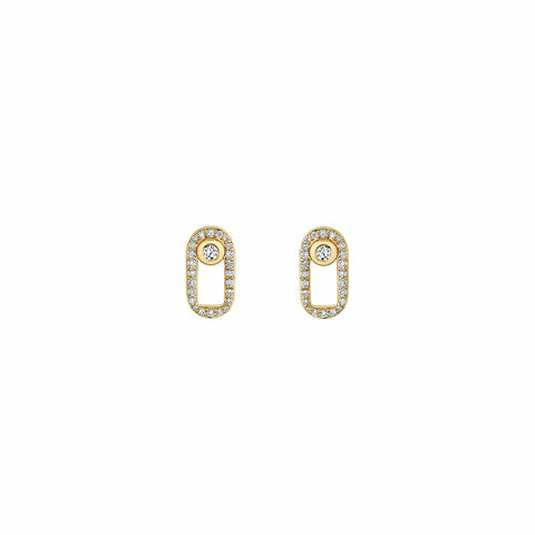 Elevate your level of individuality instantly. A pave covered 14k gold flat front facing link stud with a bezel set diamond that sits flush and pretty against the ear.